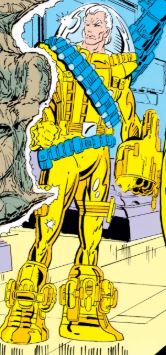 (Incredible Hulk II#343) - The Leader used his powers and technology to brainwash Saunders, making him relive his past disgraces and failures. At the end of the brainwashing process, the Leader outfitted Saunders with a suit of armor that contained a variety of weapons and explosives, giving him the name Redeemer. The Leader paired him with LaRoquette, whom the Leader had also empowered and brainwashed as Rock.