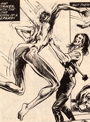 Kull and the Barbarians#2/2, pg. 7, panel 1 (skewering vampiric creature with staff);