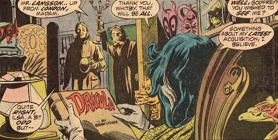 (Tomb of Dracula I#3) - When Ilsa's solicitor, Godfrey Langston, visited her estate to discuss an offer to purchase her recent acquistion of Castle Dracula (it was from Dracula himself, secretly working through his agent Clifton Graves), he noted to Whitby that she could afford to spend a few pounds on lamps. Though he knew why she disliked strong lights, he noted that such lights would allow others to better see her myriad pictures on the walls; he commented on her beauty, understanding why she was sought after as a model back in the day.