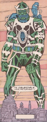 (Silver Surfer III#10 (fb)) - Eternity, the abstract being who personified Life and Existence, sensed that a group of Elders of the Universe were planning to destroy Galactus and then Eternity himself. Instead of taking direct action, Eternity chose to meditate on the pure idea of continuity, and his meditation caused some Celestials (including Jemiah the Analyzer) to appear from the nebulous spheres.