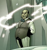 Powers/Abilities: The Timebroker is an immaterial construct projected from the multiversal Panoptichron. His projection can traverse through different realities and despite being visually seen by those in his vicinity, the Timebroker cannot be detected by computer systems or scanners.