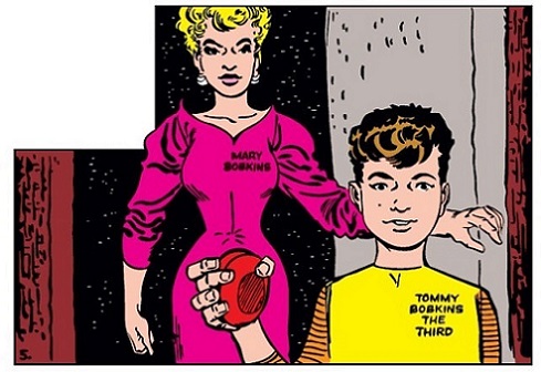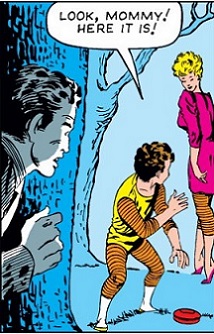 Amazing Adult Fantasy#8/4, p4, pan5 (Tommy Bobkins III tells Mary Bobkins that he's found lost yo-yo; Tom Bobkins Sr. (foreground))