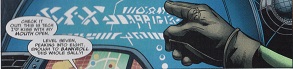 teleports away with ship, the Boneyard Dog, but the ship isn't seen in the next page, and there’s a lot of empty space