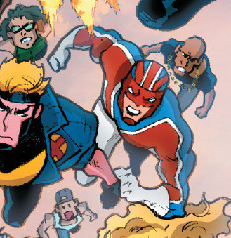 X-Men '92 II#10, p30 (Captain Britain, Dark Angel, Gloriana, Killpower, Motormouth)