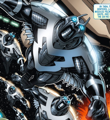 (War or Kings#2) - The Inhumans used the Chorus Sentries to attack the Shi'ar, destroying many of their ships.