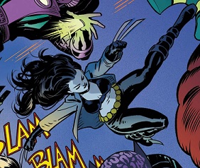 introducing herself as the person who would kick Wolvie's butt. A fight