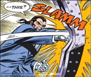 Powers/Abilities: His hands were constructed of cybernetically grafted chromium steel which granted him superhuman strength sufficient to punch large dents into heavy steel girders and were later modified with the ability to shock others with a stunning dose of electricity.