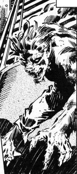 Powers/Abilities: As a human, Jeffrey was a seemingly normal fourteen year old body with no skills or abilities that stood out (other than being a lycanthrope). As a werewolf, the boy possessed the typical powers associated with werewolves: superhuman speed and strength (from enhanced to superhuman levels), invulnerability to ordinary weapons or injury including decapitation, being only vulnerable to silver. He changed during nights of the full moon, but was not a wolf full time during this period, instead changing back and forth; whether he had any control over the ability or her lupine form remains unrevealed (see comments).