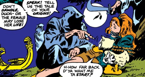 Howard the Duck Newspaper Strip August 28th, 1977, pan1 (questioning Howard)