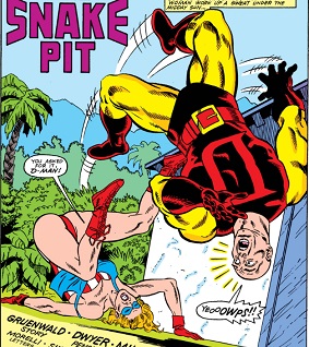 (Captain America I#340 (fb) - BTS) - Frustrated with Jack's not teaching her, Vagabond asked D-Man to teach her some wrestling moves. As he started to do so, however, Nomad arrived and assumed that D-Man was trying to romance her (see comments).