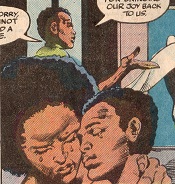 (Moon Knight II#6) - Three days later, Moon Knight liberated the youth and returned him to his parents. Startled by Moon Knight's costumed appearance, the parents asked what he wanted, and after he told them he wished only to return their son, the husband asked if he was the one who had taken their son.Moon Knight told the couple that he had been the one to take their son, identified himself, and asked in return to use their phone. Apologetically noting that they could not afford a phone, the father thanked the departing Moon Knight for bringing their joy back to them. --Moon Knight II#6 |