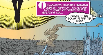 Thor remained unsatisfied, as the Rigellians from that planet had still suffered and died, and they were not restored. Photon comforted him, noting that they had not died in vain, as their fall drew the Avengers into the conflict, and they had thus stopped the Infinites from destroying all of the planets in the Milky Way galaxy (and other galaxies). |