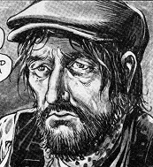 (Vampire Tales#8/3 (fb)) - Returning from a party, the man heard a scream as he walked past the Thornehill place. Rushing inside the house to see what was wrong, the man observed the vampire Martin Cunningham (although he didn't know Cunningham's identity) drinking the blood from Carla, with Gerry lying on the ground, presumably already dead. (Vampire Tales#8/3 (fb) - BTS) - The witness escaped unharmed, and he apparently told others what he had seen but no one believed him. Haunted by the events, the man eventually descended into alcoholism; however, the appearance of the vampire remained fresh in his mind. (Vampire Tales#8/3 (fb) - BTS) - Ten years later, the Thornehills' son, Jason, came across a 10-year-old Daily Bugle headline article describing his parents as having been slain in a "bizarre blood ritual." Via investigating the coroner's inquest/report, Jason learned that there was a eye-witness to his parents' murder.(Vampire Tales#8/3 (fb)) - Jason located the witness in the slum, and he pressured him to tell heard his story. Knowing the man had been an artist, Jason asked him to draw the killer's face. (Vampire Tales#8/3 (fb) - BTS) - Noting that his hands had "gone soft," the witness asked Jason to buy him a pint (of some form of alcohol), and the witness drew the picture. Seeing the image and recognizing it as Martin, Jason headed back home and destroyed Martin with a wooden stake. --Vampire Tales#8/3 |