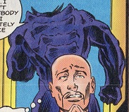 (Die-Cut#4) - As X-Beast struggled to resist the force that rendered all those around him insane, the chaos-force unleashed the Crone -- the winter and decline of mankind, the awful aftermath of godhood -- who told X-Beast that he had opened a door that should never have been opened. As the Crone spread into the sky above Cyclaedea, preparing to destroy everything and subsume it in fear, Die-Cut appeared with the Red Skull. Die-Cut struck X-Beast to get his attention and told him that if he didn't listen to his master, they were all dead.