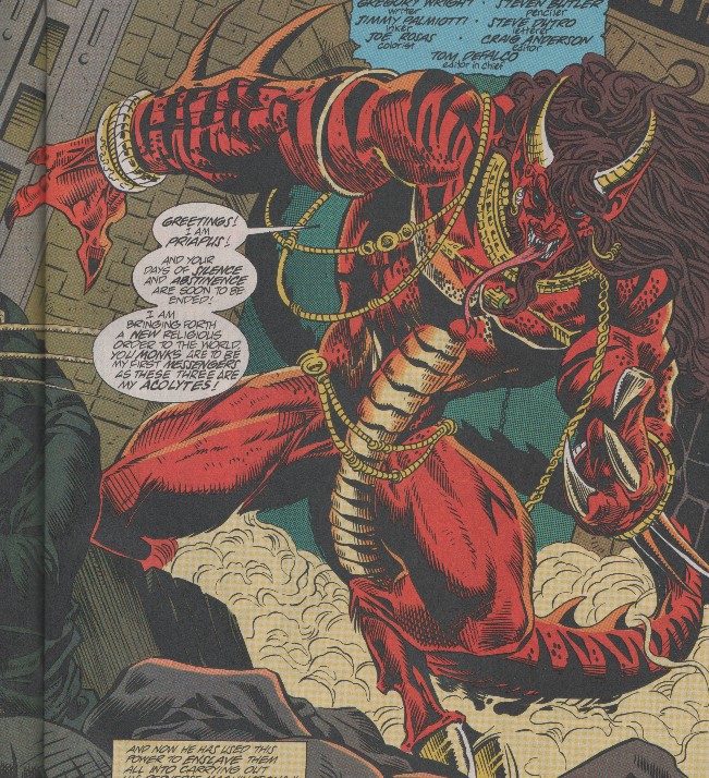 (Terror INC#11 (fb) - BTS) - Brother Randi counseled Mikal Dragonmekas (Hellfire), instructing him to recruit Terror to help him obtain the Carnal Serpent.