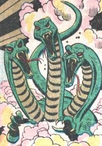 (Defenders I#6) - Mythical creatures, the Serpent of Rham and the Beast of Nohel were created by the incense-powered Cyrus Black to battle the Defenders. The beast was quickly defeated by the Silver Surfer's power cosmic. The Serpent had two of its heads sliced off by Valkyrie's ebony blade before it was dispersed by a punch from Namor.